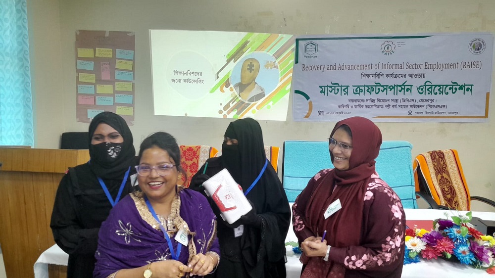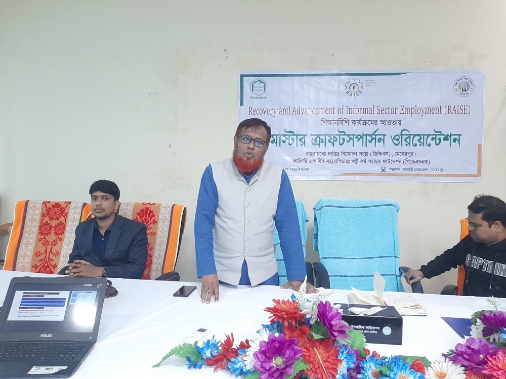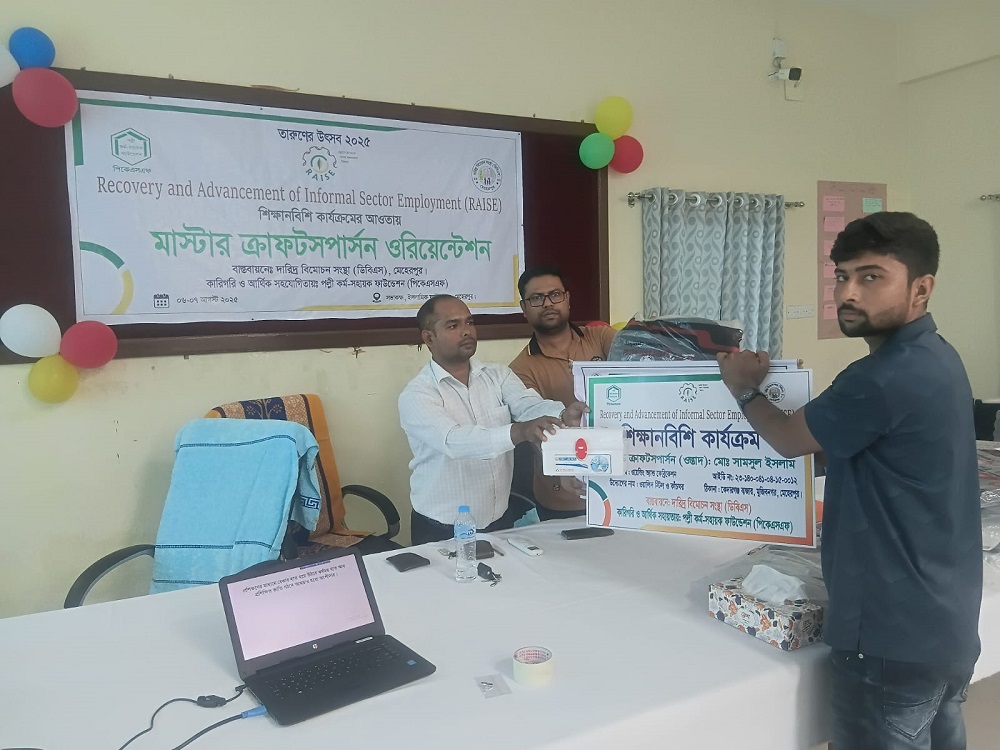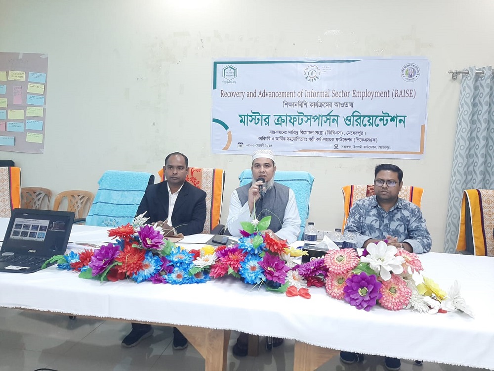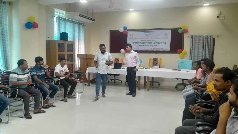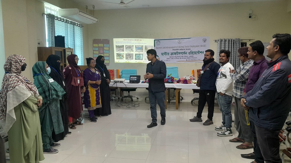 RAISE প্রকল্পের আওতায় ৬ মাস মেয়াদি শিক্ষানবিশি কর্যক্রমে নতুন মাস্টার ক্রাফটসপার্সন/ওস্তাদদের ২ দিন মেয়াদি ওরিয়েন্টেশন প্রদান করা হয় এবং প্রকল্প সংশ্লিস্ট উপকরন বিতরন করা হয়। ২০২৪-২৫ অর্থ বছরে মোট ৩৫ জন মাস্টার ক্রাফটসপার্সন/ওস্তাদদের ২ দিন মেয়াদি ওরিয়েন্টেশন প্রদান করা হয়।
